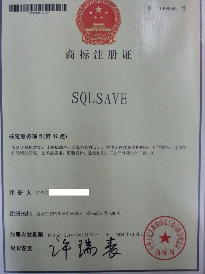 公司创始人江传力为鑫海云系列数据恢复软件申请的商标